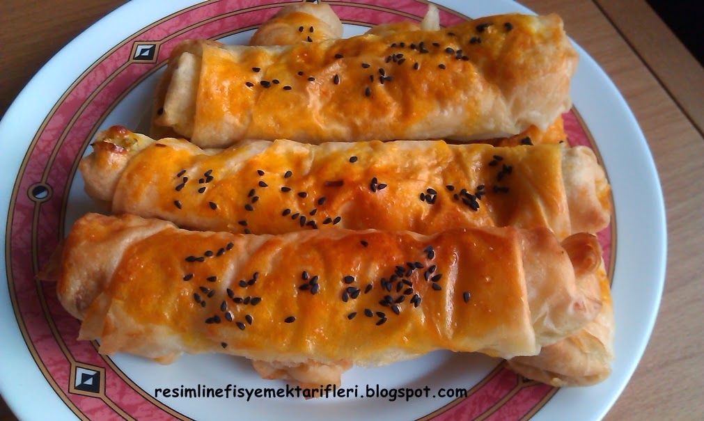 - Geride kalan iki yufka içinde aynı işlemleri yapar ve tepsiye dizeriz üzerine yumurta sarısı süreriz arzuya bağlı olarak da susam veya çörek otu atarız.
