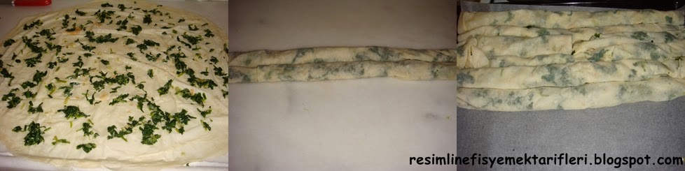 - 1 tane yufka masaya açılır,içine hazırladığımız sıvı karışımdan biraz süreriz,üzerine kavurduğumuz ıspanaktan dökeriz.
