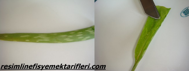 Uçuk olan bölgeye Aloe Vera yaprağı dik olarak bıçak yardımla çizilir ve açılır.